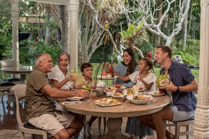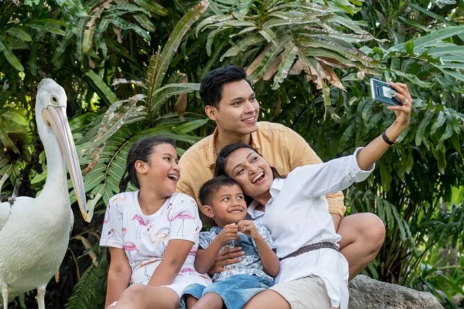 Il biglietto include l’ingresso per tutta la giornata al Bali Bird Park con accesso a tutti gli spettacoli, alle sessioni di alimentazione interattive (compresi lorichetti e pellicani), tasse locali incluse e l’ingresso al divertente film in 4D — puoi arrivare in qualsiasi momento dalle 9 alle 17 e goderti la visita al tuo ritmo.