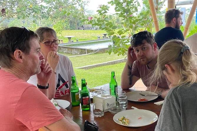 Il pranzo dopo il rafting ha avuto un sapore speciale (ero affamato). Riso, pollo satay, un sambal piccante che mi ha fatto colare il naso. Tutti hanno raccontato chi si è bagnato di più o chi ha rischiato di perdere il casco nella parte delle cascate durante il giro in quad. Lo staff ha controllato che non mancasse niente prima di ripartire—si vedeva che ci tenevano davvero a non lasciare dietro qualche scarpa o roba simile.