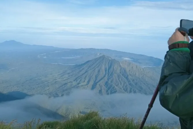 Alle 5:30 eravamo sopra le nuvole. Il cielo si è tinto di un arancione e rosa delicato—sembrava irreale. Si vedeva fino a Lombok, se strizzavi gli occhi. Tutti sono rimasti in silenzio per un attimo, a godersi il momento (e a riprendere fiato). Pak Made ha scattato qualche foto mentre sorseggiavamo il caffè caldo dalla sua borraccia—non era mai stato così buono.