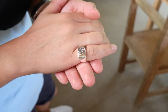 La parte pratica? Onestamente, è stata più difficile di quanto pensassi. Sciogliere l’argento è stato intenso — c’era un odore metallico pungente mescolato a qualcosa di dolce, come l’incenso che bruciava vicino. Le mani tremavano mentre modellavo il metallo (Komang annuiva paziente), ma col tempo si entra in ritmo. A pranzo le dita erano annerite e avevo creato qualcosa che sembrava… beh, unico. Ma vedere alla fine tutti i pezzi sul tavolo — forme diverse e storie diverse — mi ha fatto capire che è proprio questo il senso. Torni a casa con più di un gioiello; porti con te un pezzetto del loro mondo. A volte mi sorprendo a girare quell’anello sul dito e a ricordare il silenzio mentre eravamo tutti concentrati sul lavoro.
