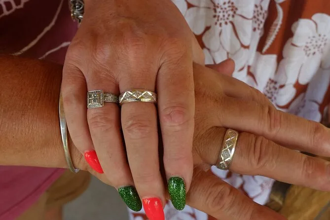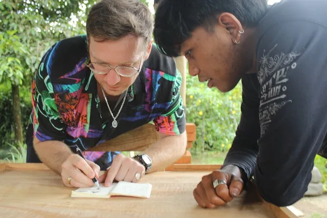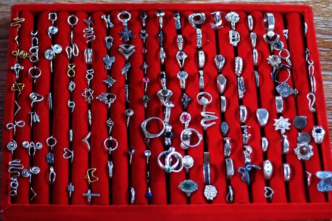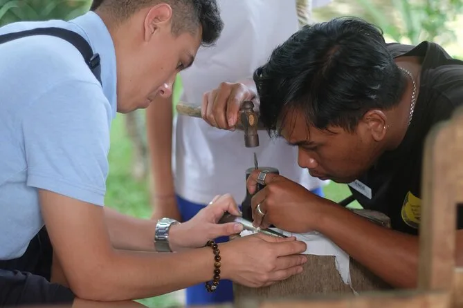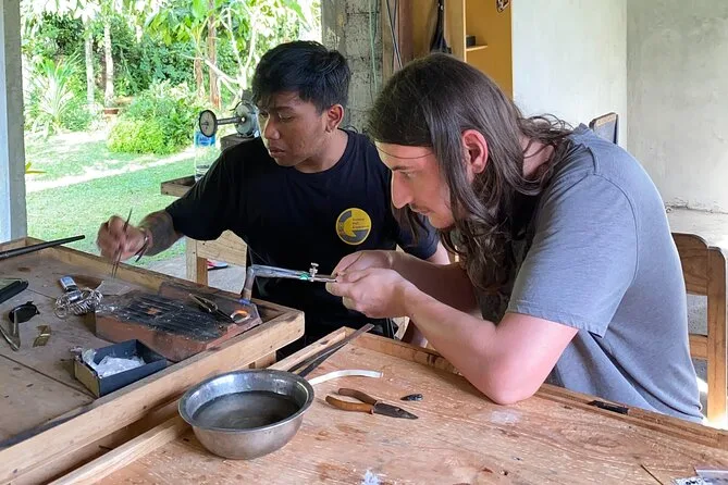 Il tuo giorno include il pickup dall’hotel nell’area di Ubud, bevande di benvenuto come caffè o tè balinese con snack locali all’arrivo nello studio di famiglia a Delodsema, la guida di esperti argentieri che sono anche narratori, tutti gli strumenti necessari e 7 grammi di argento per creare il tuo gioiello prima di tornare con la tua creazione in mano.