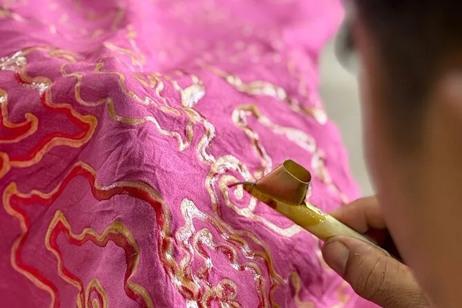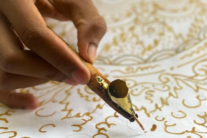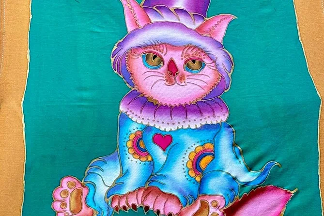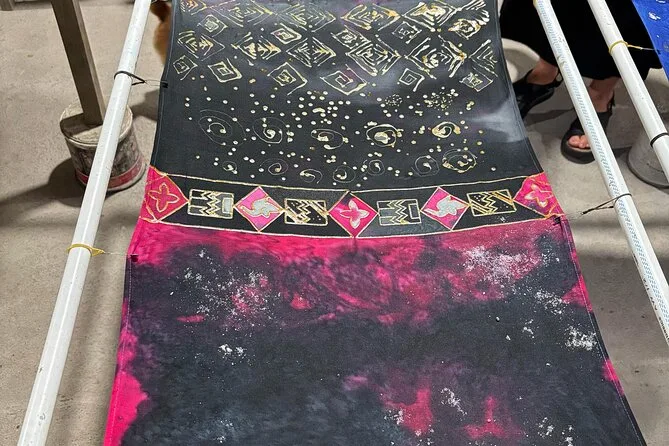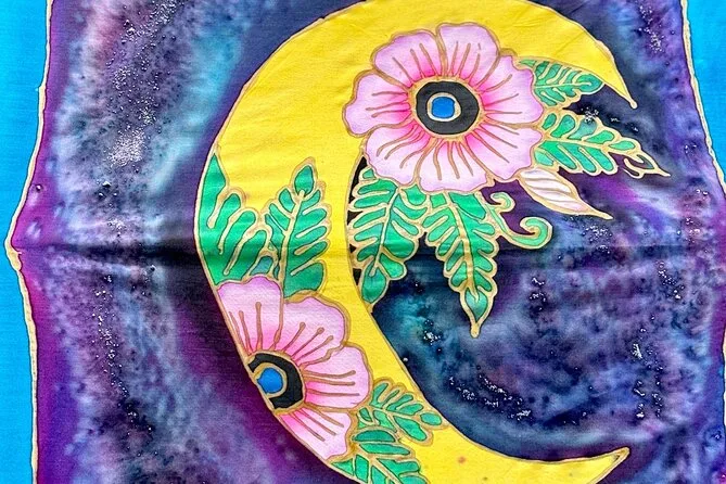 Usi cera calda e colori vivaci per creare disegni sul tessuto sotto la guida degli artisti.