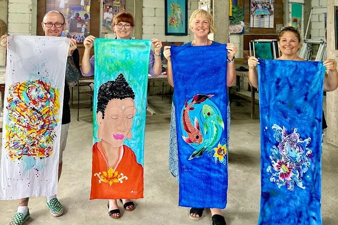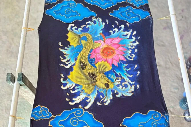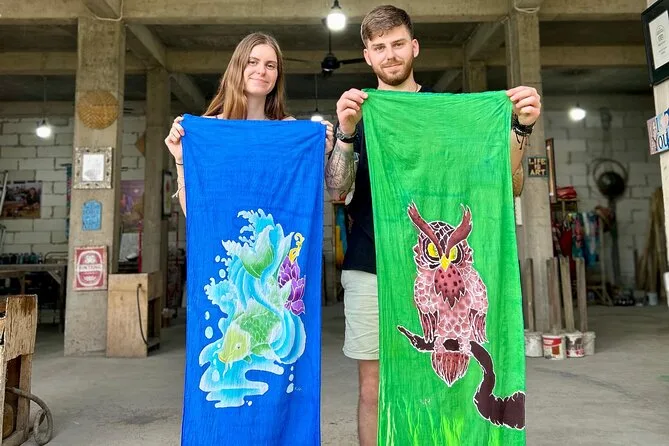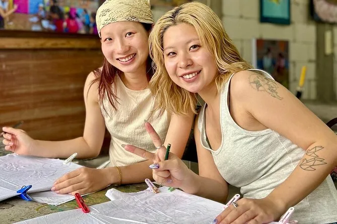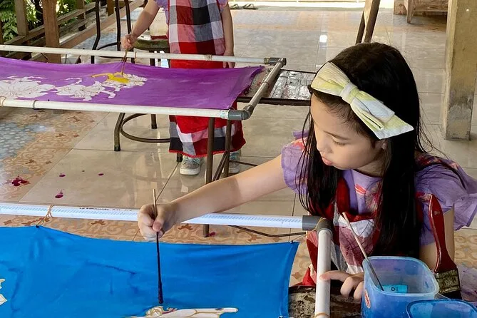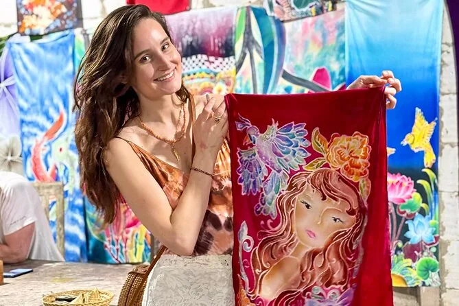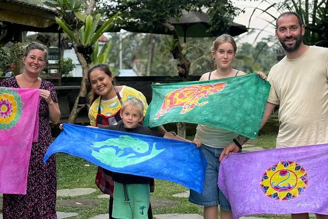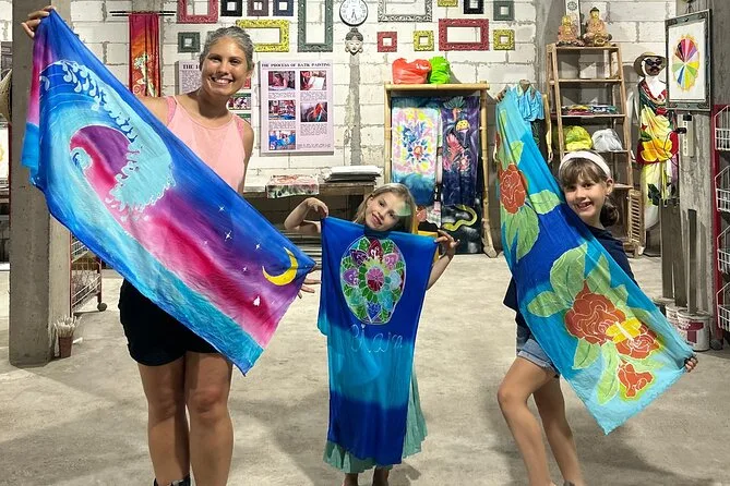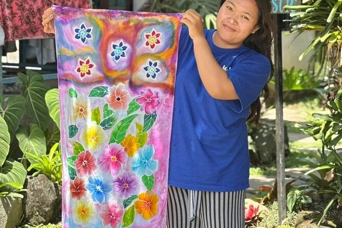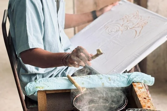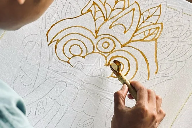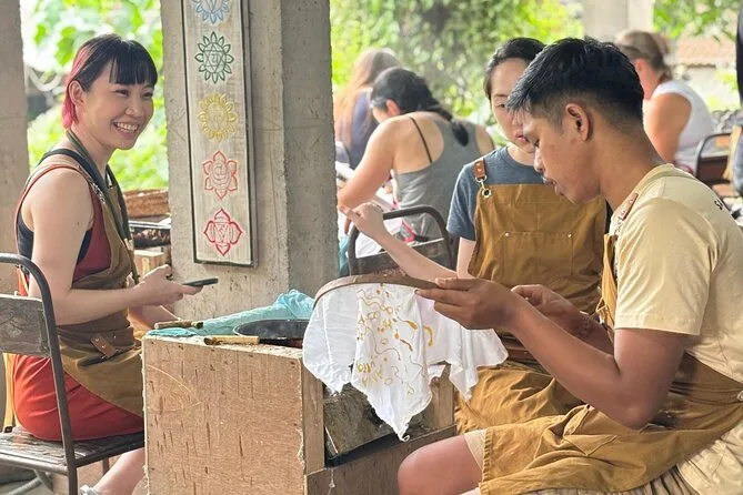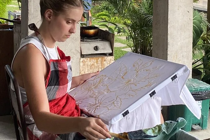 Pak Made ci ha mostrato i vecchi telai di legno con i tessuti bianchi tesi — li chiamava “kain mori” — e ci ha spiegato come si dipinge il batik usando cera e colori. Sembrava tutto così semplice mentre tracciava linee fluide con lo strumento canting (io invece all’inizio ho fatto qualche macchia). Ho provato a imitare i suoi movimenti ma il mio fiore sembrava più un polpo. Lui ha riso e ha detto: “È il tuo stile!” e così mi sono rilassato. La parola chiave qui è davvero corso pittura batik Ubud — ma a dire il vero sembrava più una chiacchierata tra amici pazienti e artisti.
