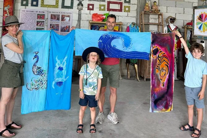 Entrerai in uno studio di famiglia a Keliki vicino a Ubud e imparerai la pittura batik fianco a fianco con artisti locali. Prova la tecnica della cera, gusta snack e caffè mentre lavori e porta a casa la tua creazione colorata — insieme a storie che ricorderai più di qualsiasi souvenir.