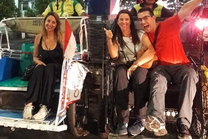 La tua serata include tutti i giri in becak nel centro di Yogyakarta con una guida locale che parla inglese. Ogni tappa prevede snack e street food giavanesi autentici (con opzioni per esigenze alimentari), bevande come kopi joss e infusi alle erbe, ingressi per attività divertenti all’Alun-Alun Kidul—compresi giochi tradizionali—e un impermeabile in caso di pioggia.