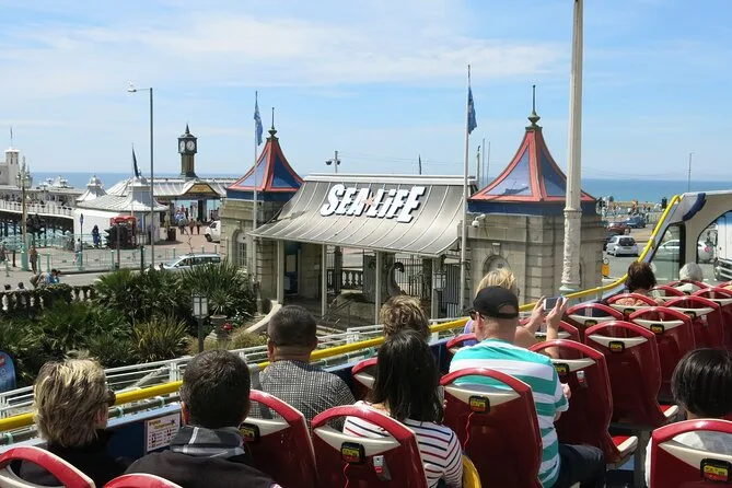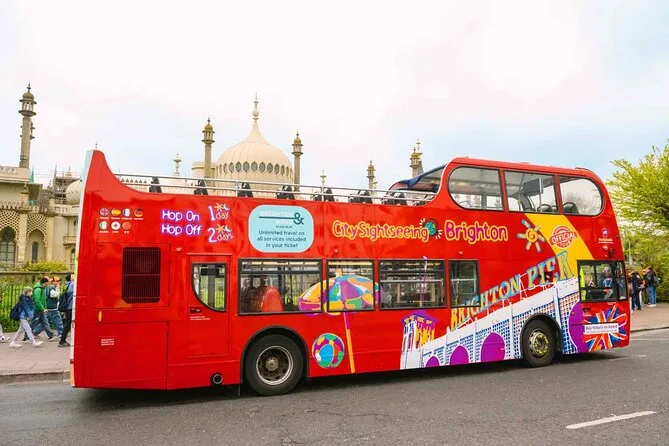 Vivi l’energia di Brighton dal piano superiore dell’autobus mentre viaggi tra Palace Pier, Royal Pavilion e Brighton Marina con questo tour hop-on hop-off flessibile. Con audioguida in sette lingue e sconti sulle attrazioni, esplora a tuo ritmo, fermandoti per il panorama o uno snack improvvisato quando vuoi.