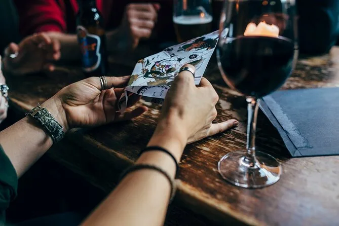 La tua giornata include indizi interattivi inviati via SMS e chiamate mentre esplori Marylebone a piedi con la tua squadra; enigmi pratici; incontri con persone reali lungo il percorso; pause programmate in pub o caffè per rinfrescarti; biglietto flessibile per cambiare data o orario se necessario; e un premio per ogni giocatore che completa la sfida.