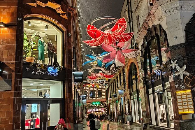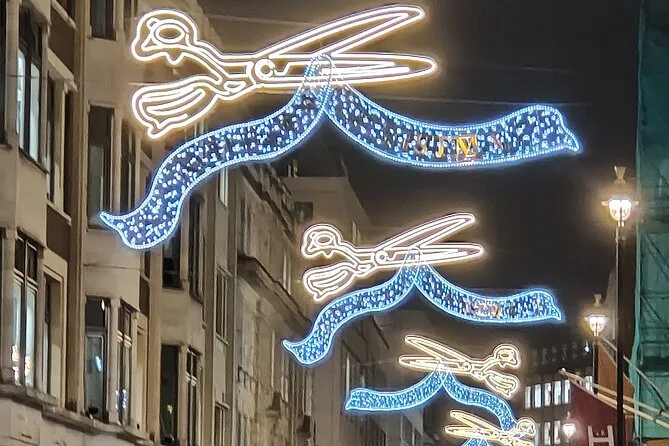 È come se la città trattenesse il respiro in attesa del Natale — esci vicino a Oxford Street e all’improvviso ti ritrovi immerso in quell’atmosfera magica. L’aria profuma leggermente di castagne arrostite (qualcuno le vende da un carretto, credo), e ci sono tante persone avvolte in cappotti pesanti, che ridono o semplicemente si fermano a guardare le luci sopra di loro. La nostra guida, Sam, ci ha chiamati vicino alla vetrina di Selfridges — aveva già notato qualcosa di strano nell’allestimento che io avevo completamente perso. Conosceva tutte quelle piccole storie sui negozi e su come quella strada fosse un tempo romana — non pensavo che quella parte mi sarebbe rimasta impressa.