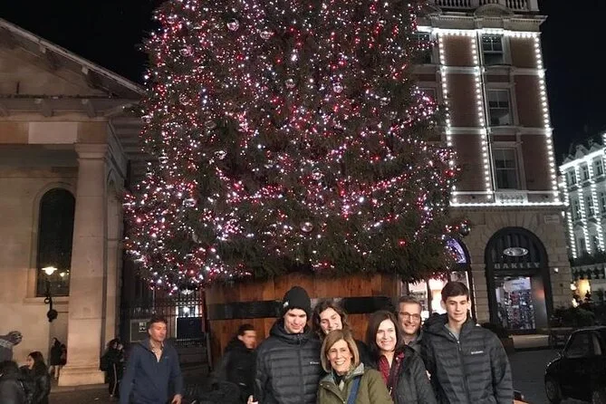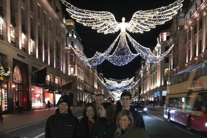 A un certo punto siamo scesi vicino a Regent Street per qualche foto. L’aria era pungente e fredda, ma si sentiva l’odore delle castagne arrostite da qualche parte — o forse era solo un desiderio. C’erano famiglie ovunque, bambini ben coperti che si urlavano addosso in tre lingue diverse. La nostra guida ha aspettato paziente mentre cercavamo (senza successo) di far entrare tutti in una foto sotto gli enormi angeli luminosi. Non mi aspettavo di sentirmi così… coinvolto? Sono solo luci, eppure non lo sono.