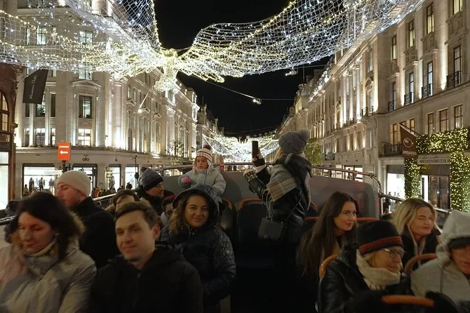 Non pensavo di sentirmi di nuovo un bambino solo seduto sul ponte superiore di un bus a dicembre, e invece eccomi lì — guance fredde, mani avvolte intorno a un bicchiere di carta (ho portato il mio tè, niente giudizi), mentre le luci di Natale di Londra sfrecciavano accanto a me. La nostra guida, Sam, aveva un modo tutto suo di trasformare persino i rallentamenti in parte dello spettacolo — ci ha raccontato che le figure fatate sopra The Strand sono ispirate a vecchie storie teatrali. Probabilmente ho perso metà delle sue battute perché continuavo a guardare in su quegli angeli luminosi su Regent Street. Sembrano davvero sospesi in aria.