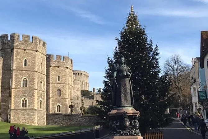 Dopo aver curiosato nel centro visitatori (ho provato a sedermi in una di quelle capanne ricostruite — più accoglienti di quanto pensassi), siamo risaliti sul van. Il viaggio verso Windsor è volato; mi sono anche addormentato un po’ e mi sono svegliato proprio mentre parcheggiavamo vicino a un vecchio pub per pranzo. Dentro era tutto legno scuro e soffitti bassi — ho ordinato una fish pie perché sembrava la scelta giusta. La guida chiacchierava con il barista di calcio; io ascoltavo, e l’atmosfera era davvero amichevole. Poi, girando l’angolo, è spuntato Windsor Castle — molto più imponente di come lo immaginavo in TV.