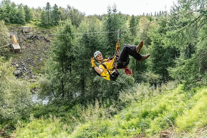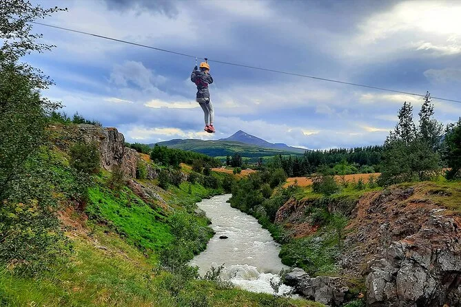 Il tuo giorno include casco da arrampicata, imbrago e tutta l’attrezzatura di sicurezza necessaria per ogni zipline. Una guida locale ti accompagna lungo sentieri boschivi nel canyon Glerárgil. Basta presentarsi vestiti per il clima islandese — al resto pensiamo noi.