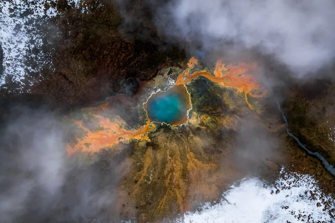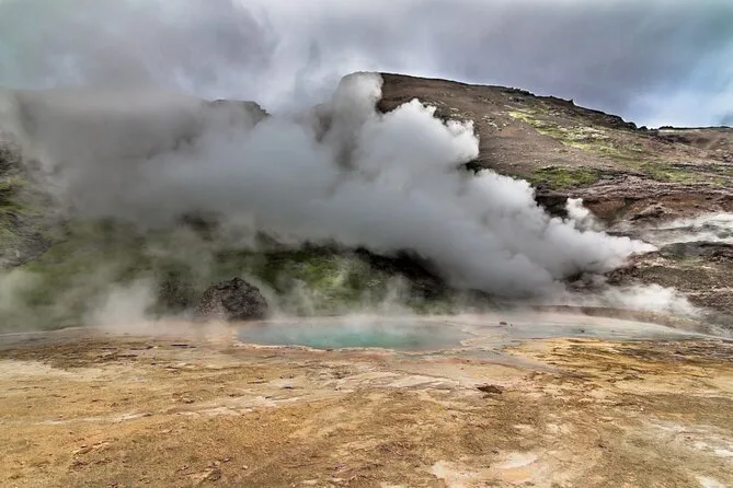 Vedrai la sala concerti Harpa, il vulcano Hengill, l’area geotermica di Hveragerdi, campi di lava, sorgenti calde, geyser e scorci di Reykjavik dall’alto.