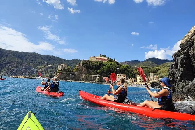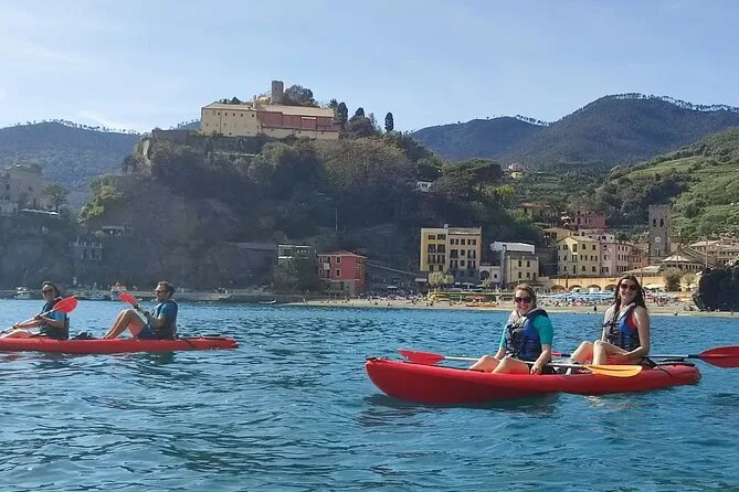 La tua giornata include l’uso di kayak sit-on-top stabili con pagaie, attrezzatura per snorkeling se vuoi, maglie di lycra su richiesta, salvagenti per la sicurezza, accesso a docce e spogliatoi alla spiaggia Stella Marina di Monterosso, più una borsa impermeabile per i tuoi oggetti — il tutto guidato da una guida locale qualificata che fa vivere le storie delle Cinque Terre mentre remi lungo la costa.