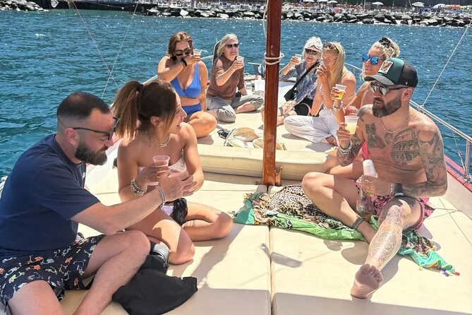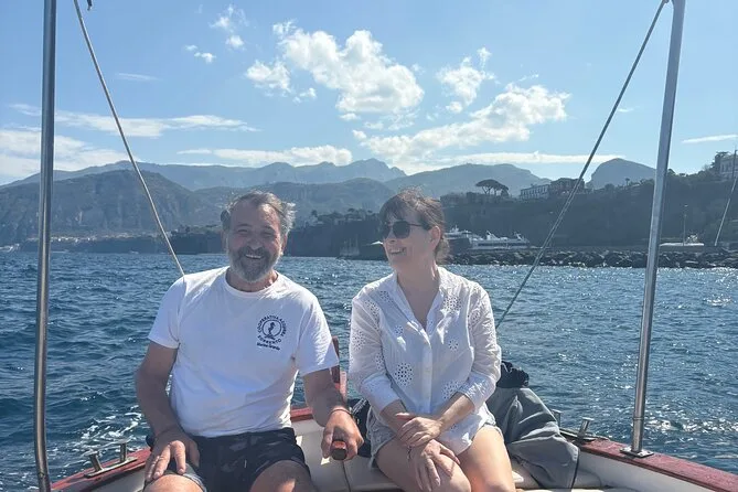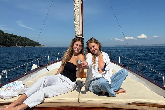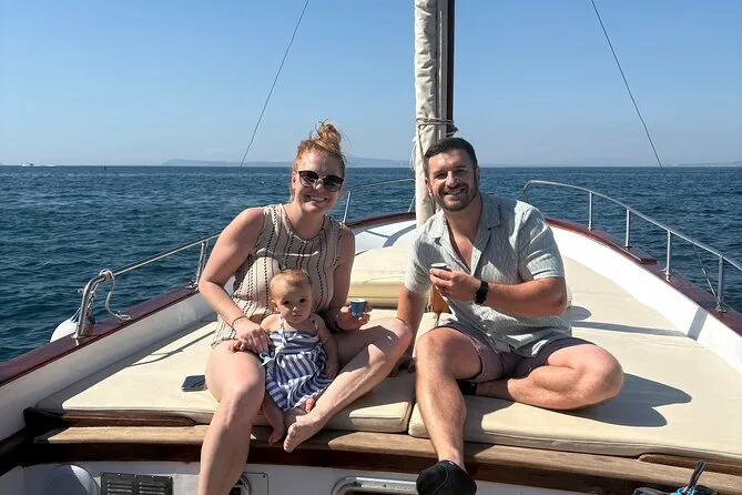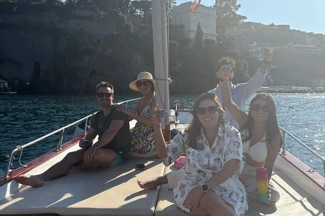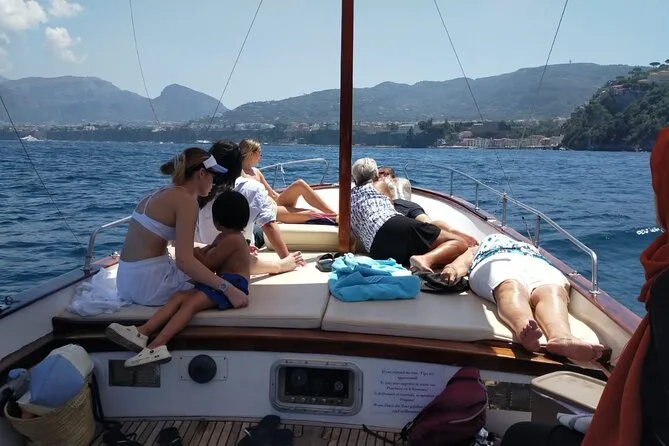 Siamo saliti su questo classico gozzo Fratelli Aprea a Marina Grande—onestamente ero un po’ preoccupato per l’equilibrio, ma il nostro skipper Marco ha sorriso e mi ha aiutato a salire come se lo facesse da una vita. La barca profumava leggermente di sale e scorza di limone (forse era solo suggestione), e appena ci siamo allontanati dal molo, le case pastello di Sorrento hanno iniziato a diventare sempre più piccole dietro di noi. Era più silenzioso di quanto immaginassi—solo il ronzio del motore e qualche risata lontana da un’altra barca.