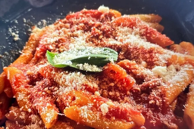 Il tuo giorno include il pick-up e il ritorno in hotel entro 2 km da Sorrento, trasporto confortevole in minivan Mercedes con aria condizionata e un autista locale che condivide storie lungo il percorso, più un pranzo leggero con bruschetta al pomodoro o prosciutto di Parma e mozzarella, piatti di pasta fresca (pomodoro/pesto/ragù), sorbetto al limone, vino locale e acqua, prima del rientro in hotel la sera.