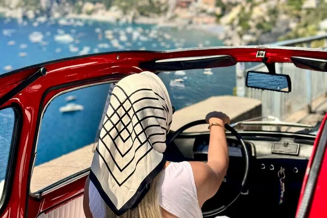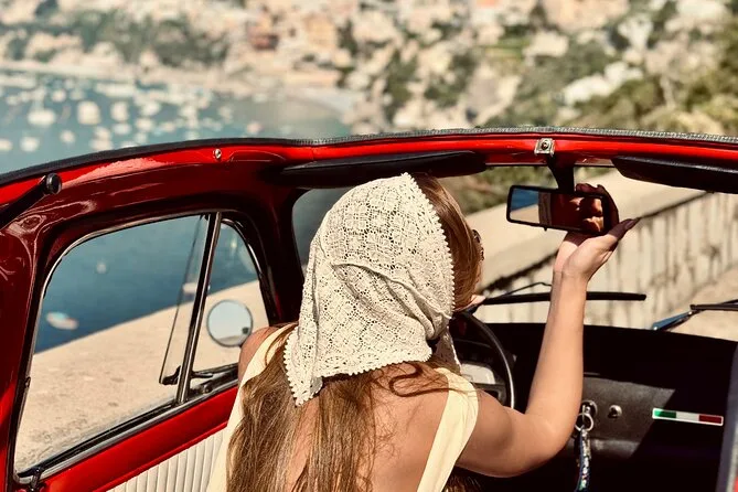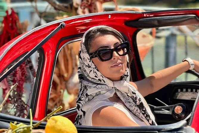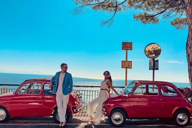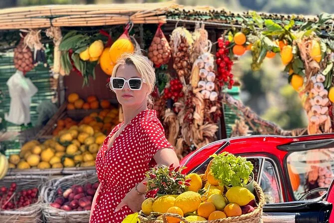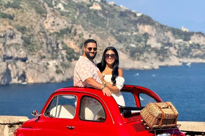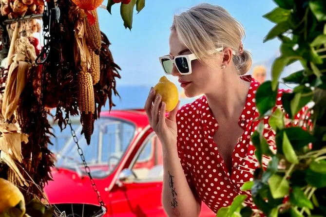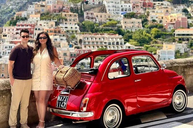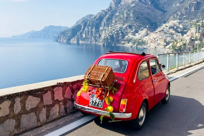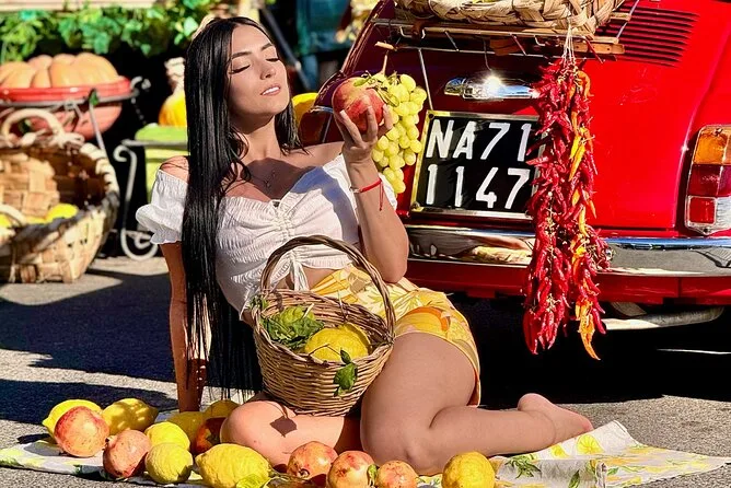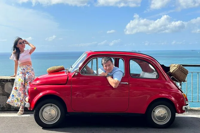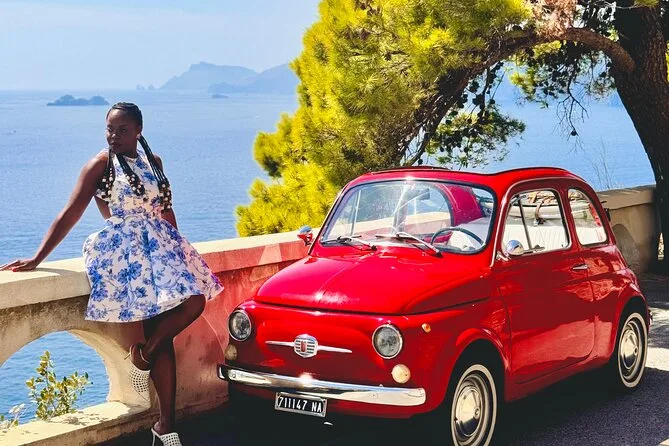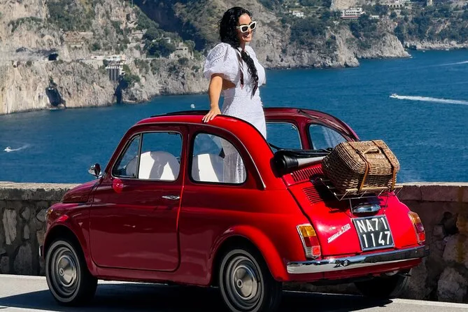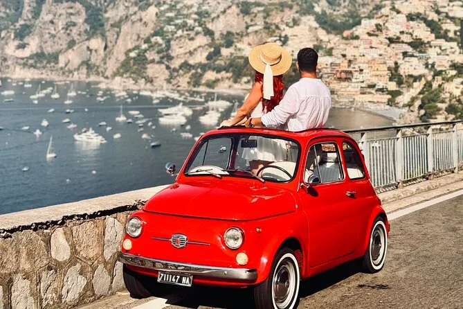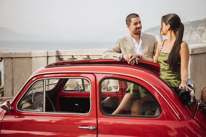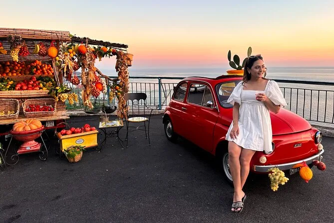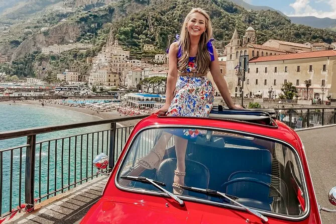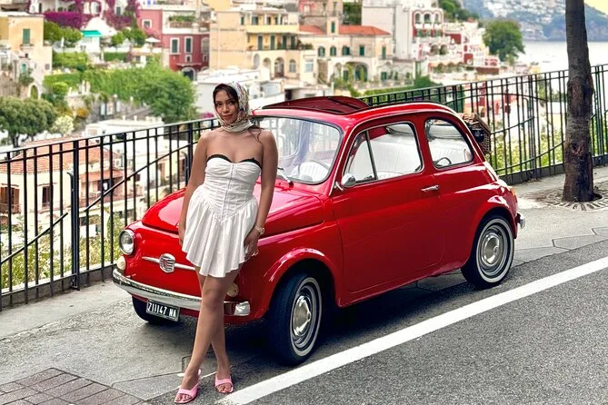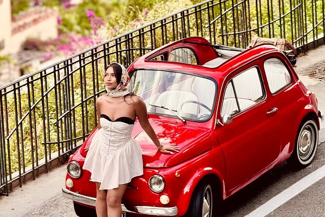 Ti infilerai in una Fiat 500 d’epoca con un fotografo locale e attraverserai i borghi della Costiera Amalfitana come Positano e Praiano. Aspettati foto spontanee (e qualche posa imbarazzante), aria salmastra, racconti della guida e ricordi digitali inviati direttamente al tuo telefono. Se il tempo o il percorso lo permettono, vedrai anche il Fiordo di Furore — ma soprattutto ti sembrerà di entrare in un sogno di luce e mare.