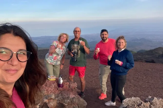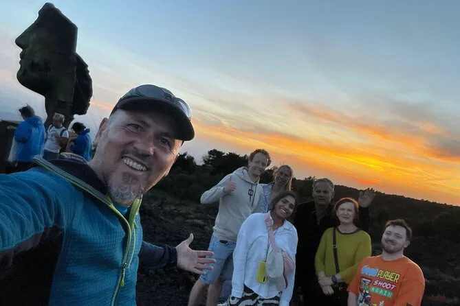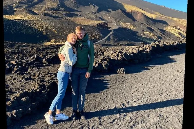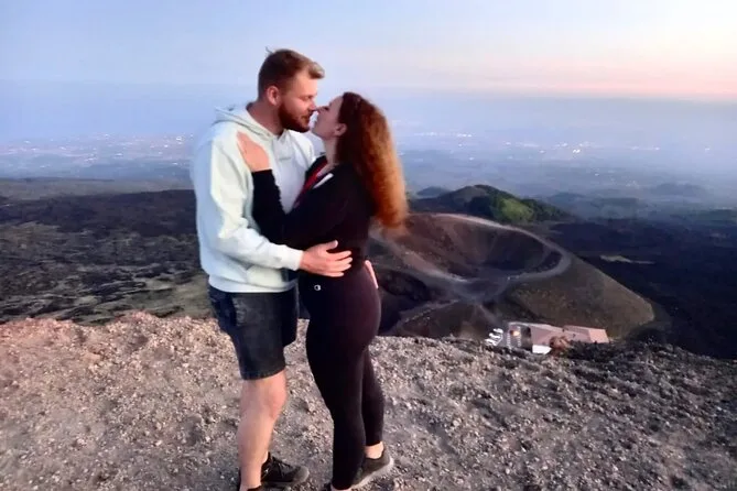 Il tour comprende il pick-up in hotel a Catania, trasferimenti in veicolo climatizzato con autista, visite alle colate laviche e ai faraglioni di Acitrezza, degustazione in fattoria (miele, olio d’oliva, vini), esplorazione guidata di una grotta di lava con caschi e torce, trekking facile al tramonto intorno a crateri a 2.000 m e ritorno.