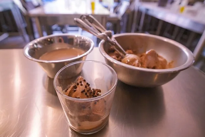 Fare l’impasto della pizza da zero è più pasticciato di quanto pensassi — all’inizio appiccicoso, poi improvvisamente liscio sotto le mani. Marco ci ha mostrato come stenderlo senza strapparlo (io l’ho strappato lo stesso), raccontando storie della cucina di sua nonna vicino a Napoli. Mentre l’impasto riposava sotto un panno umido, siamo passati alla postazione del gelato. Il profumo di vaniglia mi ha colpito subito — dolce ma leggero — e abbiamo montato panna e zucchero finché il braccio non ha iniziato a far male. La parte che ho amato di più? Assaggiare la base prima ancora di metterla nella macchina. Aveva il sapore dell’estate, in qualche modo.