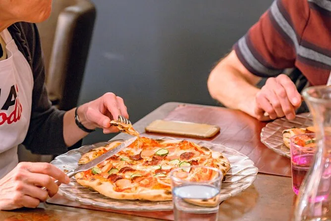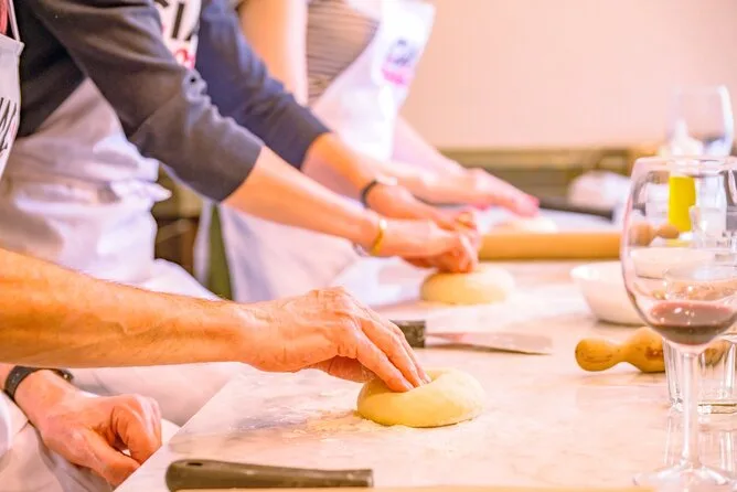 Il pomeriggio comprende tutti gli ingredienti per preparare pizza e gelato da zero, grembiuli e utensili in una pizzeria esclusiva nel cuore di Firenze, la guida di uno chef che parla inglese in ogni fase del laboratorio pratico, vino Chianti illimitato o bevande analcoliche per i bambini durante il pasto (dove mangerai quello che hai cucinato), acqua a disposizione e un certificato di partecipazione da portare a casa come ricordo.