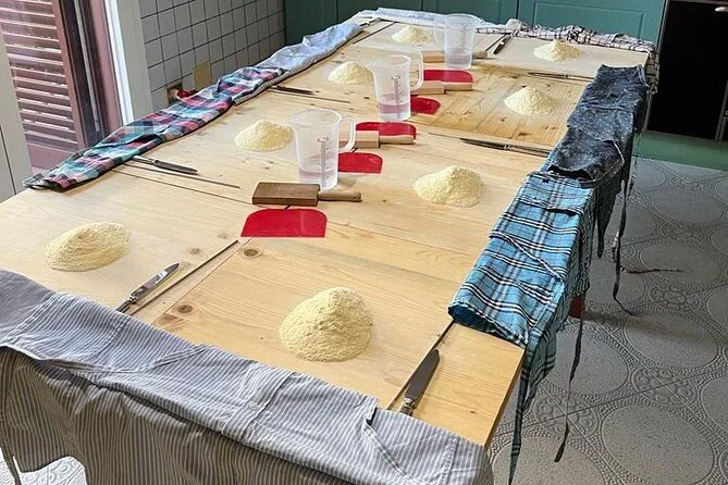 La serata include un aperitivo di benvenuto con specialità del Salento, caffè leccese con ghiaccio, lezioni pratiche per fare orecchiette e maccheroni al ferretto con uno chef locale, due sughi classici preparati insieme, cena con pane fatto in casa, dessert, vini locali (rosso/rosato/bianco), limoncello fatto in casa — e porterai a casa ricette e il tuo attrezzo per la pasta come souvenir.