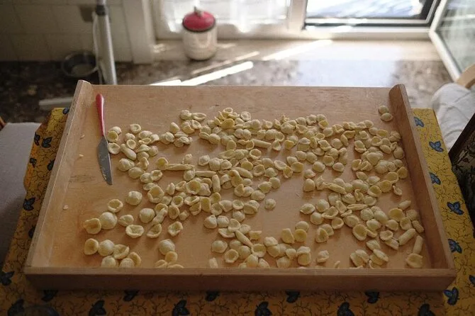 Entrerai in una cucina di Lecce dove impasterai orecchiette fresche a mano, riderai con uno chef locale sorseggiando caffè e limoncello, preparerai due sughi classici e poi ti godrai una cena fatta in casa con vini del Salento. Mani infarinati, nuovi amici e ricette (più il tuo attrezzo per la pasta) per portare un po’ di Puglia a casa.