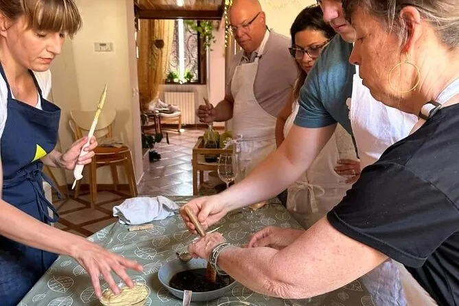 Sedersi tutti insieme al suo lungo tavolo di legno — piatti caldi dal vapore della pasta, bicchieri di vino appannati — sembrava meno una lezione e più un invito a cena da una zia. Il tiramisù era cremoso, leggero e allo stesso tempo ricco (penso ancora all’ultimo cucchiaio). Quando siamo andati via, Chiara ci ha dato le ricette stampate con qualche appunto scritto a mano. Vorrei provarle a casa, ma… beh, senza le sue storie in cucina non è la stessa cosa.