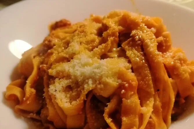 Il corso è iniziato con un aperitivo (lei lo chiama così) — fette di formaggio e salame, olive che sembravano appena raccolte dall’orto di qualcuno, e Chiara versava il vino come se stesse riempiendo i bicchieri di vecchi amici. Ci ha mostrato come fare le tagliatelle fresche, che sembravano impossibili finché non ha messo le mie mani sulla pasta dicendo: “Senti, lascia che ti guidi.” La farina mi è rimasta sotto le unghie per ore. Abbiamo parlato di come ogni nonna abbia la sua ricetta — a quanto pare in Italia si litiga per il sugo. Ho provato a pronunciare “tiramisù” correttamente; Chiara ha riso e mi ha corretto due volte.