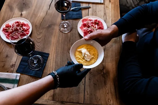 Non riesco a smettere di pensare a quel risotto — giallo intenso di zafferano, intrecciato a cervo brasato dal sapore quasi dolce che contrastava con il riso. Qualcuno ha chiesto il bis (non io… beh, forse sì). Il dolce è arrivato proprio quando avevo giurato di non poter mangiare altro: tiramisù spolverato di cacao, soffice come una nuvola. L’intero tour è sembrato meno una lista di cose da fare e più un invito a scoprire la routine preferita di un quartiere — risate tra un boccone e l’altro, storie che non troveresti su TripAdvisor.
