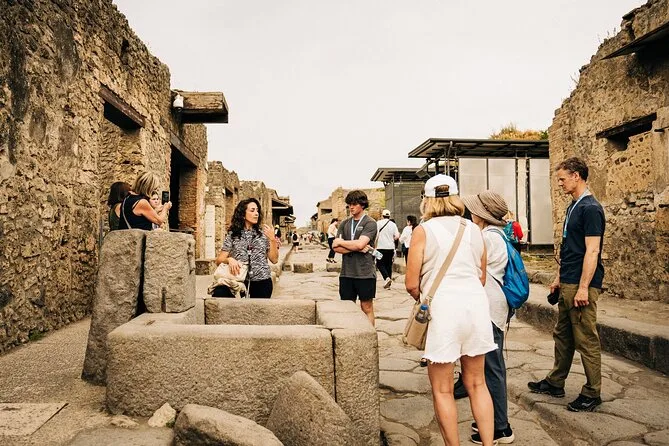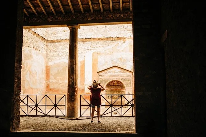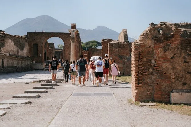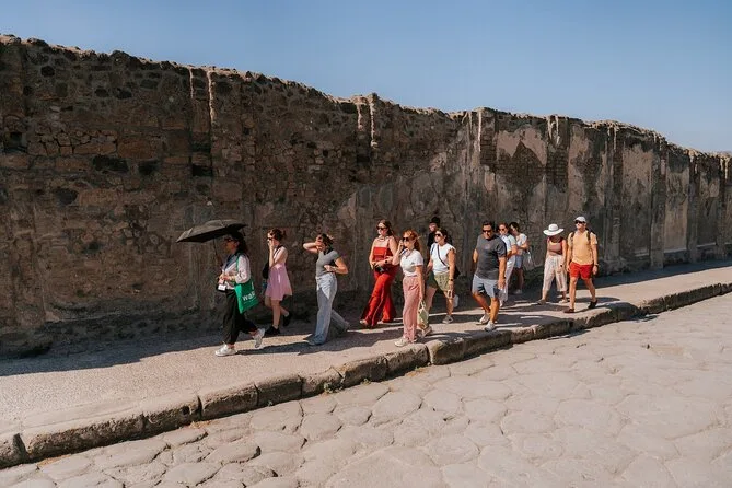 Il tour guidato a Pompei prevede fino a 18 partecipanti; il trasporto può essere condiviso da due gruppi (massimo 36 persone).