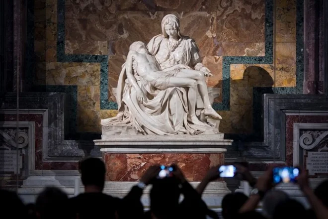 Dopo siamo andati alla Basilica di San Pietro — si percepisce subito il cambiamento uscendo dai musei e entrando in quello spazio immenso. La luce del sole entra dalle finestre alte, polvere che danza nell’aria. Marta ci ha guidati verso la Pietà di Michelangelo; non pensavo sarebbe stato così emozionante ma lì davanti… è tutta un’altra cosa. Il marmo sembra morbido. Accanto a noi una coppia anziana si è fatta il segno della croce e ha sostato in silenzio a lungo — mi ha fatto pensare a tutte le persone che sono passate di lì prima di noi. Abbiamo concluso vicino al Baldacchino di Bernini; a quel punto i piedi erano stanchi ma non volevo andarmene.