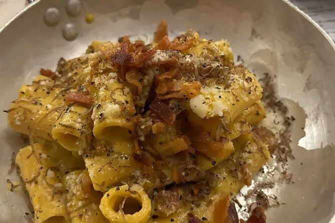 La tua giornata inizia con un caffè per partire col piede giusto, degustazioni nella celebre pizzeria di Bonci e in negozi gourmet (pensa a tartufi e aceto balsamico invecchiato), assaggi in diverse bancarelle del mercato Trionfale, e un pranzo rilassato con pasta fresca e tiramisù fatto in casa—il tutto accompagnato da vino locale a volontà prima di tornare a immergerti nelle vivaci strade di Roma.