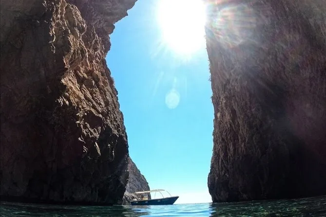 Abbiamo navigato oltre Punta Meliso e quel faro bianco — onestamente, visto dal mare sembra ancora più alto. La guida ci ha raccontato storie di contrabbandieri nascosti in queste grotte (credo scherzasse a metà), e ci ha indicato Ortocupo e Suffio mentre passavamo. Dopo aver girato Punta Ristola verso il lato Ionio, tutto è cambiato: le scogliere sono più dolci, la luce più calda in qualche modo. La Grotta del Diavolo non era come me l’ero immaginata — solo una bocca scura che si apre, un’aria fresca che ti sfiora il viso mentre guardi dentro. Pensavo a come la gente del posto conosca ogni centimetro di questa costa.
