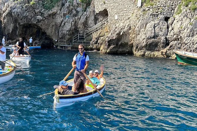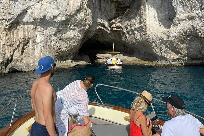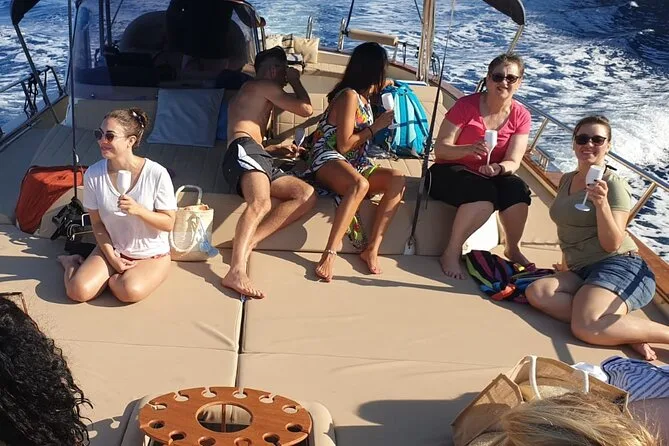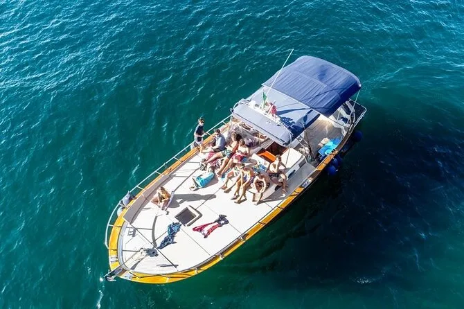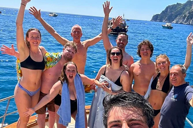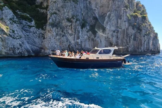 La giornata prevede la navigazione da Sorrento con uno skipper che parla inglese che guida il piccolo gruppo lungo la costa, passando per Marina Grande e rovine romane. Ci sono due soste per nuotare con maschere da sub a disposizione, oltre a bevande analcoliche, acqua, birra, frutta di stagione e una bottiglia di vino per barca. A bordo troverai anche un bagno e una doccia con acqua dolce prima del rientro nel tardo pomeriggio.