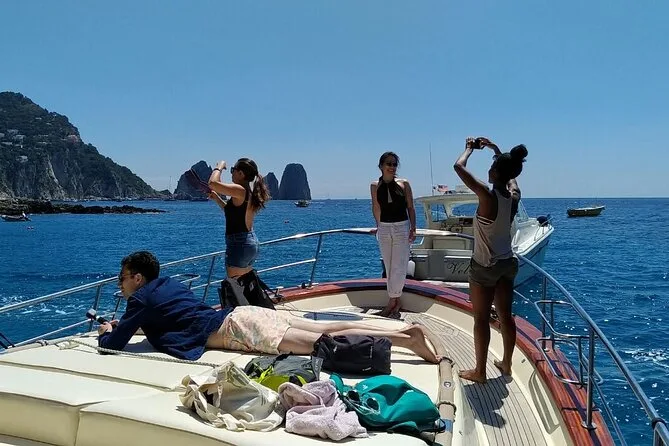 Salperai da Sorrento verso Capri con un tour in barca di piccolo gruppo, passando tra rovine antiche e scogliere mozzafiato. Nuota vicino ai celebri Faraglioni, assaggia frutta di stagione e bevande fresche a bordo, poi esplora le piazze vivaci o gli angoli tranquilli di Capri prima di tornare con la luce del pomeriggio sul mare.