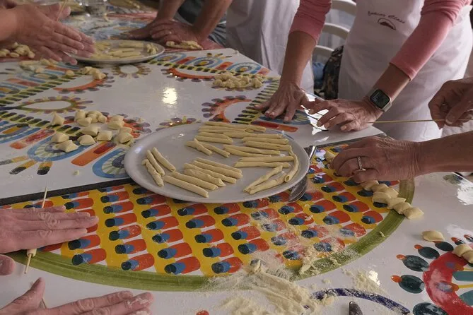 Di nuovo in cucina, la luce del sole entrava dalla finestra illuminando i tavoli spolverati di farina. Abbiamo iniziato a impastare il pane—le mani si sono appiccicate subito. Quel profumo di semola mescolata all’olio d’oliva era incredibile. Non avevo mai pensato a quanta forza serve per stendere la pasta abbastanza sottile per i ravioli; il mio primo sembrava un cuscinetto gonfio. Antonio non se l’è presa, l’ha chiuso con un gesto e ha detto “perfetto”. Abbiamo assaggiato fette di pane ancora caldo, intinte in olio piccante, insieme a formaggi salati e salame. Il vino locale che hanno versato era fresco e con un tocco erbaceo—mi è piaciuto più del previsto.