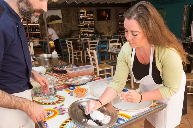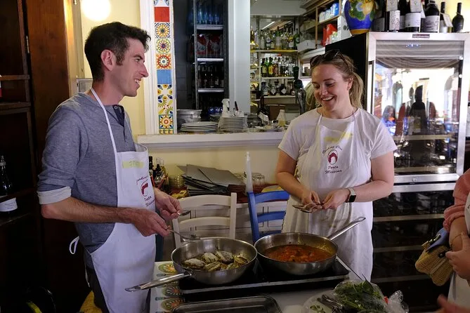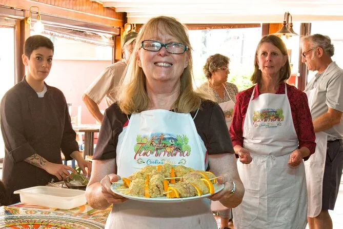 Partecipa a un piccolo gruppo a Taormina per un corso di cucina siciliana pratico che parte da Porta Messina. Fai la spesa al mercato del pesce con lo chef, poi prepara pasta, pane e piatti tipici prima di condividere un pranzo rilassato con vino locale incluso. Risate, storie autentiche e tanti assaggi ti aspettano.