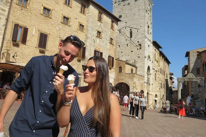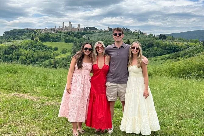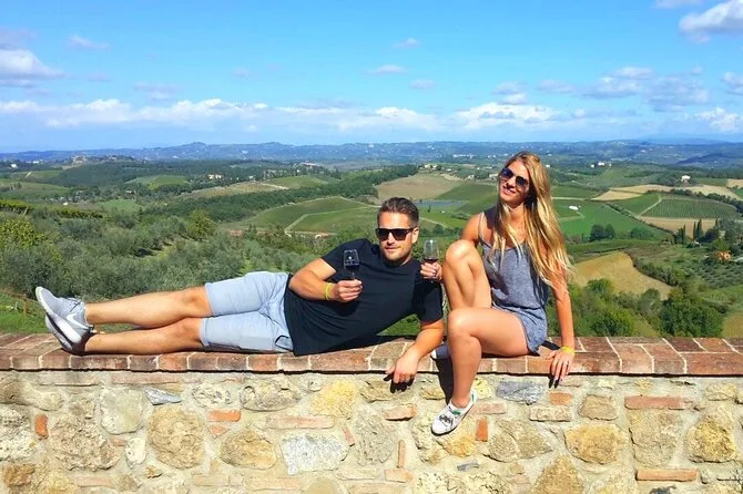 Parti da Firenze verso la classica campagna toscana, assaggia otto vini diversi in due cantine a conduzione familiare vicino a San Gimignano, gusta olio d’oliva e stuzzichini, e goditi il tempo libero per esplorare le vie medievali. Risate assicurate davanti a un calice di Chianti—e forse un panorama che non riuscirai a catturare con una foto.