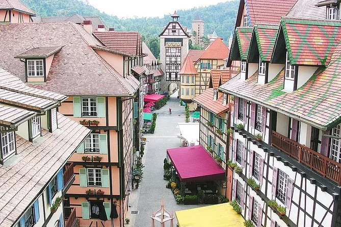 La salita verso Bukit Tinggi è sempre una piccola fuga: finestrini abbassati, si respira quell’aria fresca di montagna e l’odore delle foglie bagnate dalla pioggia della notte prima. Siamo arrivati a Colmar Tropicale poco prima che arrivassero le folle. Il posto sembra davvero un angolo d’Alsazia piantato sulle colline malesi: casette pastello, vicoli di ciottoli e quelle buffe torrette che spuntano dai tetti. La nostra guida, Amir, ci ha indicato la panetteria dove i locali prendono i croissant al mattino (quelli alle mandorle finiscono in fretta). Ho scattato una foto vicino alla torre dell’orologio—onestamente, se non dici ai tuoi amici che sei in Malesia, non lo indovinerebbero mai.