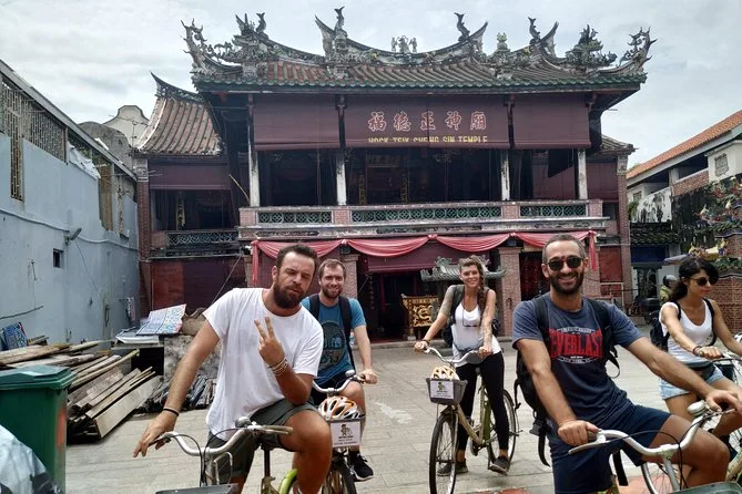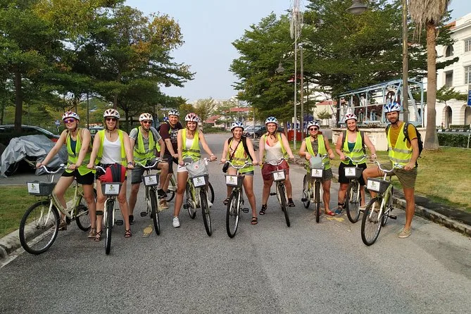 Il tuo giorno include l’uso di una bicicletta o un risciò condiviso (con giubbotto di sicurezza e casco), più acqua in bottiglia per rinfrescarti. Ti fermerai per colazione a Little India — con roti canai freschi — e gusterai un pranzo in stile hawker dopo aver esplorato George Town con la tua guida bilingue, per poi concludere in città.