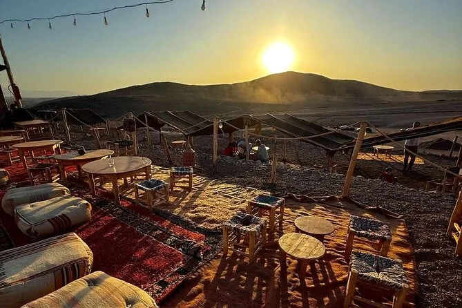 Vivi il deserto di Agafay al tramonto con un giro in cammello, corri in quad su sentieri rocciosi, visita una cooperativa femminile di olio di argan con la guida locale e condividi una cena intorno al fuoco con musica berbera sotto le stelle. Risate, sapori autentici e ricordi indelebili ti aspettano dopo Marrakech.