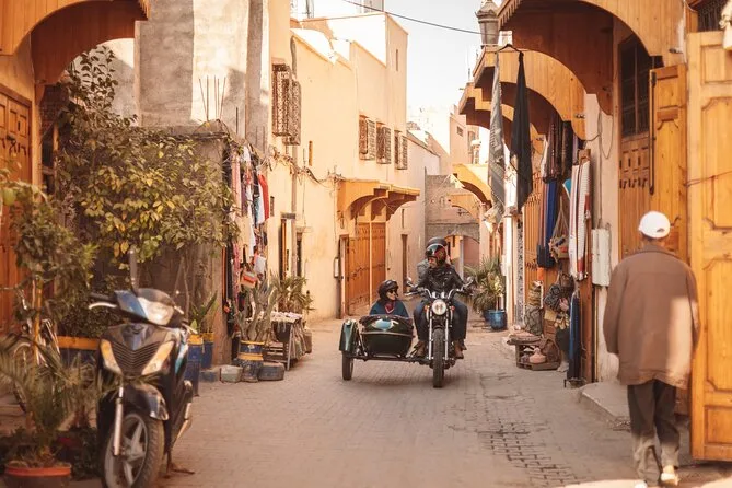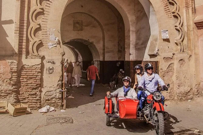 Salirai in sidecar scoperto per un tour tra il quartiere Gueliz, i vicoli della Medina e la palmaia di Marrakech, accompagnato da una guida locale che condividerà storie e aneddoti. Aspettati risate, momenti inaspettati (come quel negozio di orologi), colori e profumi intensi, con tutto l’equipaggiamento incluso per un’avventura rilassante che ricorderai a lungo.