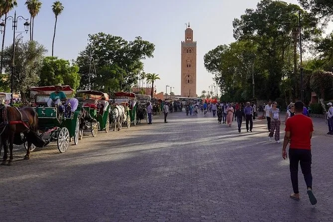 Visiterai la Moschea Koutoubia, l’Hammam Mouassine, la piazza Jemaa el-Fna, alcune zone della Medina tra cui souk e quartieri storici.