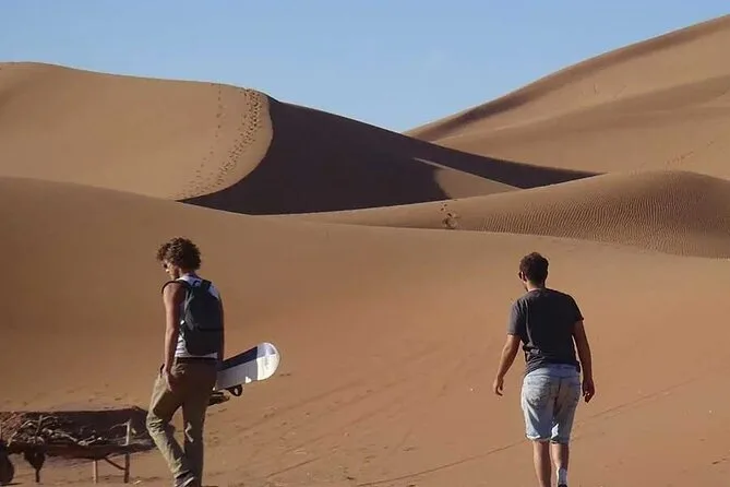 Sì, il sandboarding è incluso nelle dune di Erg Chebbi vicino al villaggio di Merzouga.