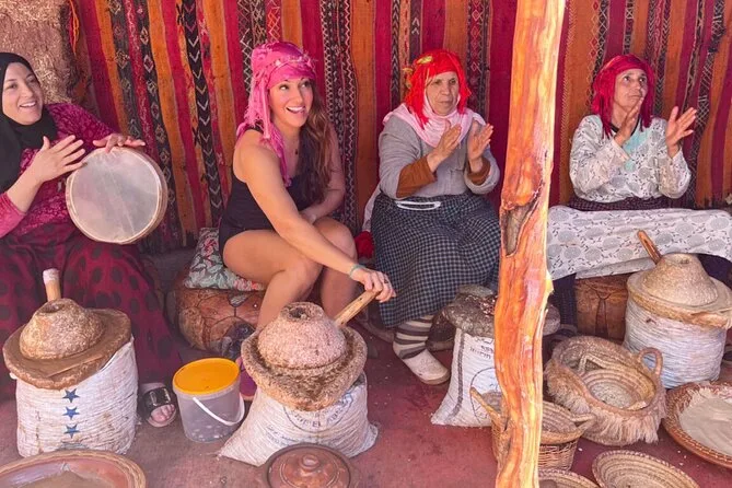 Il tour include pick-up e ritorno in hotel o riad a Marrakech, tutti gli ingressi e tasse locali, colazione in una cooperativa di olio di argan (con tè alla menta, miele, amlou e pane fresco), trasporto in veicolo confortevole con aria condizionata e guida in inglese, escursione guidata tra i villaggi berberi della valle di Imlil e pranzo berbero preparato al momento prima del rientro in città nel tardo pomeriggio.