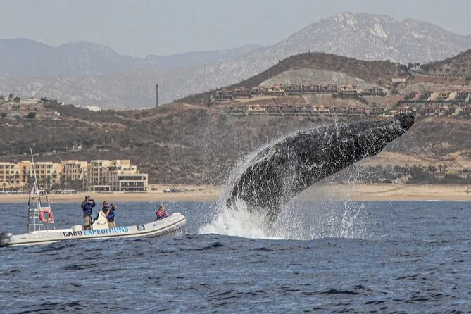 Salpa su una piccola Zodiac a Cabo San Lucas con una guida biologa marina per avvistare le balene da vicino nel Mar di Cortez. Tra risate, spruzzi di mare, avvistamenti vicino a El Arco e tante storie sulla vita marina della Baja, avrai anche acqua in bottiglia e il ritorno in hotel dopo questa avventura salata.