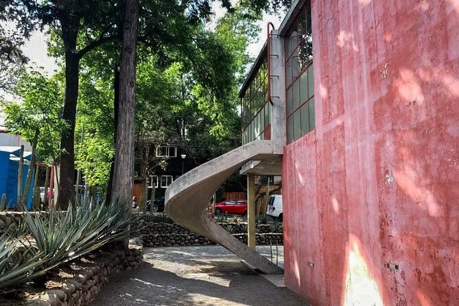 Arrivi al Museo Casa Studio di Diego Rivera e Frida Kahlo e non è affatto come me l’ero immaginato — un mix di linee decise, ponti rossi, cactus ovunque e un cielo che sembra quasi schiacciare tutto. La nostra guida, Alejandra, ci stava già chiamando. Ha iniziato subito raccontandoci di come Juan O’Gorman abbia progettato la casa per Diego e Frida — e pare avesse solo 24 anni! Mi ha fatto sentire un po’ in colpa per non aver fatto abbastanza finora, a dire il vero.