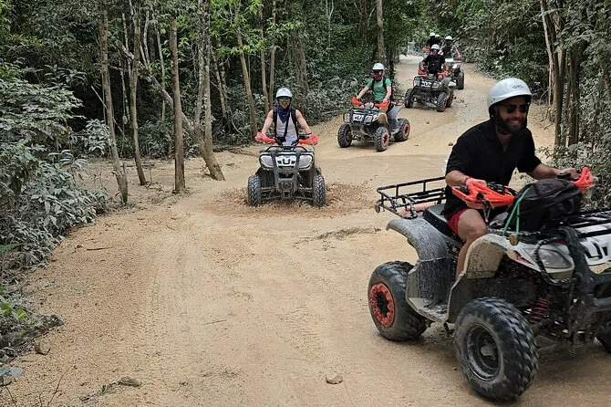 Il tuo giorno include pick-up e drop-off dal porto crociere o hotel a Cozumel, uso di ATV automatici singoli o doppi con casco e attrezzatura di sicurezza (non serve patente), ingresso alle Jade Caverns con tempo per nuotare o tuffarsi se ti senti coraggioso, acqua fredda in bottiglia durante tutto il tour più birre alla fine, deposito per borse e zaini durante le attività—e si chiude con una degustazione di tequila artigianale prima di tornare al punto di partenza.