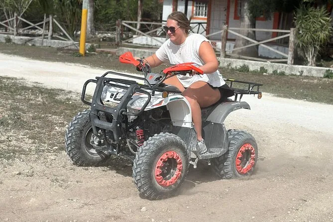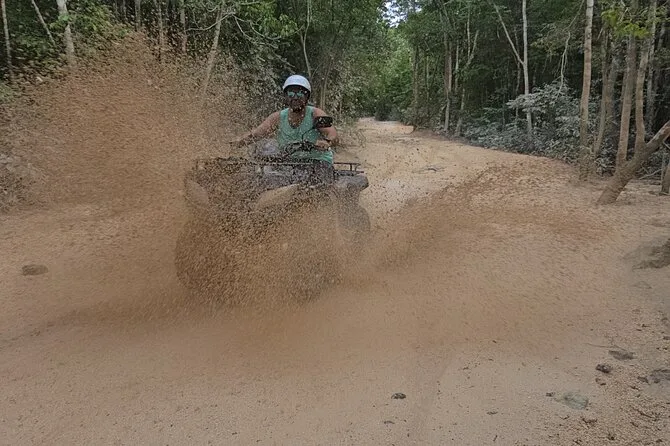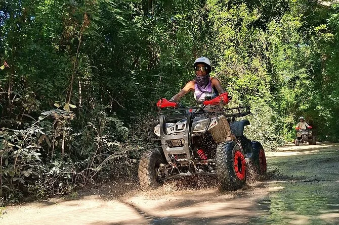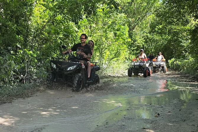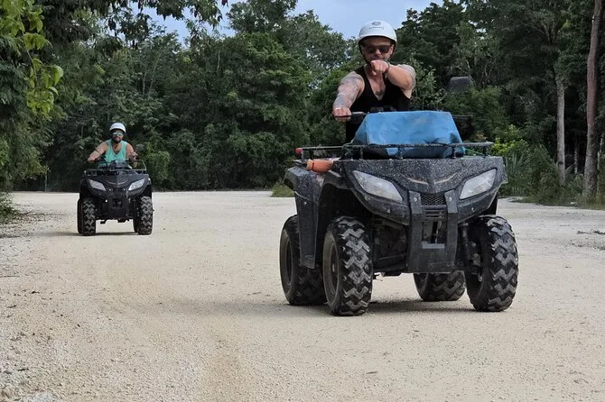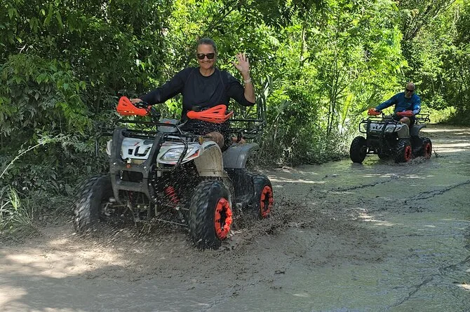 Guida un ATV tra i sentieri selvaggi di Cozumel con una guida locale, nuota o tuffati nel cenote delle Jade Caverns, esplora il villaggio Maya di El Cedral e la sua chiesa, scopri l’artigianato locale e concludi con una degustazione di tequila artigianale—scarpe sporche di fango incluse.