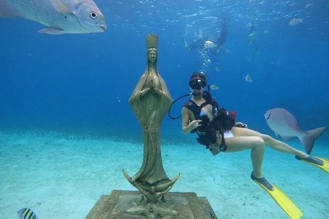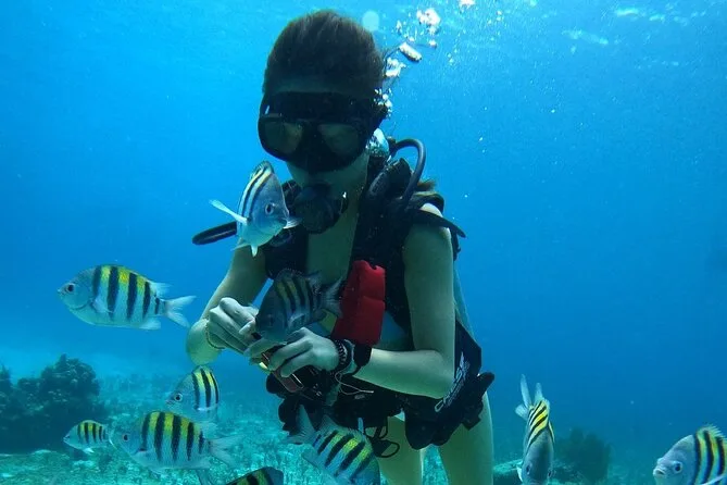 La tua giornata include l’ingresso al parco Chankanaab con accesso completo alla spiaggia e alle sdraio, una bombola d’aria per l’immersione introduttiva guidata da un istruttore bilingue certificato, l’uso di un armadietto per prenotazione, più un drink gratuito dopo l’immersione—il tutto con tempo libero per rilassarti o esplorare il parco a tuo ritmo.